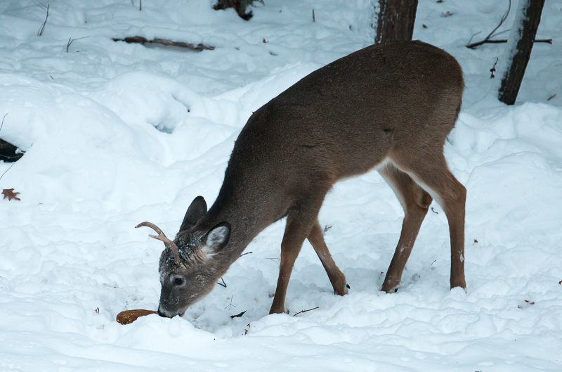 I've become familiar with the deer herd over the past few years. What was unusual about the deer that came during this storm was the number of young bucks there were. I was also surprised to see they still sported some antlers.