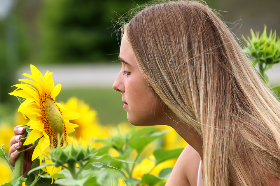 But now, Casey is going into her last year of high school, and she asked me to take her senior pictures. Oh my, how she's grown up in those three years! We photographed her at the Northport marina, in the village by the flower boxes, in a cherry orchard, and ended up among the sunflowers.
