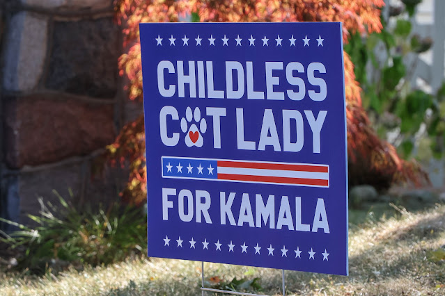 My neighborhood doesn’t allow yard signs so I’ve been taking pictures of ones I’ve seen when I’ve been out and about. It’s what I do. Most were commercially produced but some are homemade. Many are straightforward while others are humorous. All trend towards voting for Kamala Harris as our next president. That’s what I’m doing.